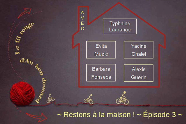 Merci à Typhaine Laurance, Evita Muzic, Yacine Chalel, Barabara Fonseca et Alexis Guerin pour nous avoir ouvert leurs portes afin de nous partager leur quotidien de cycliste à domicile. Merci également à Laura Weislo pour la mise en relation.